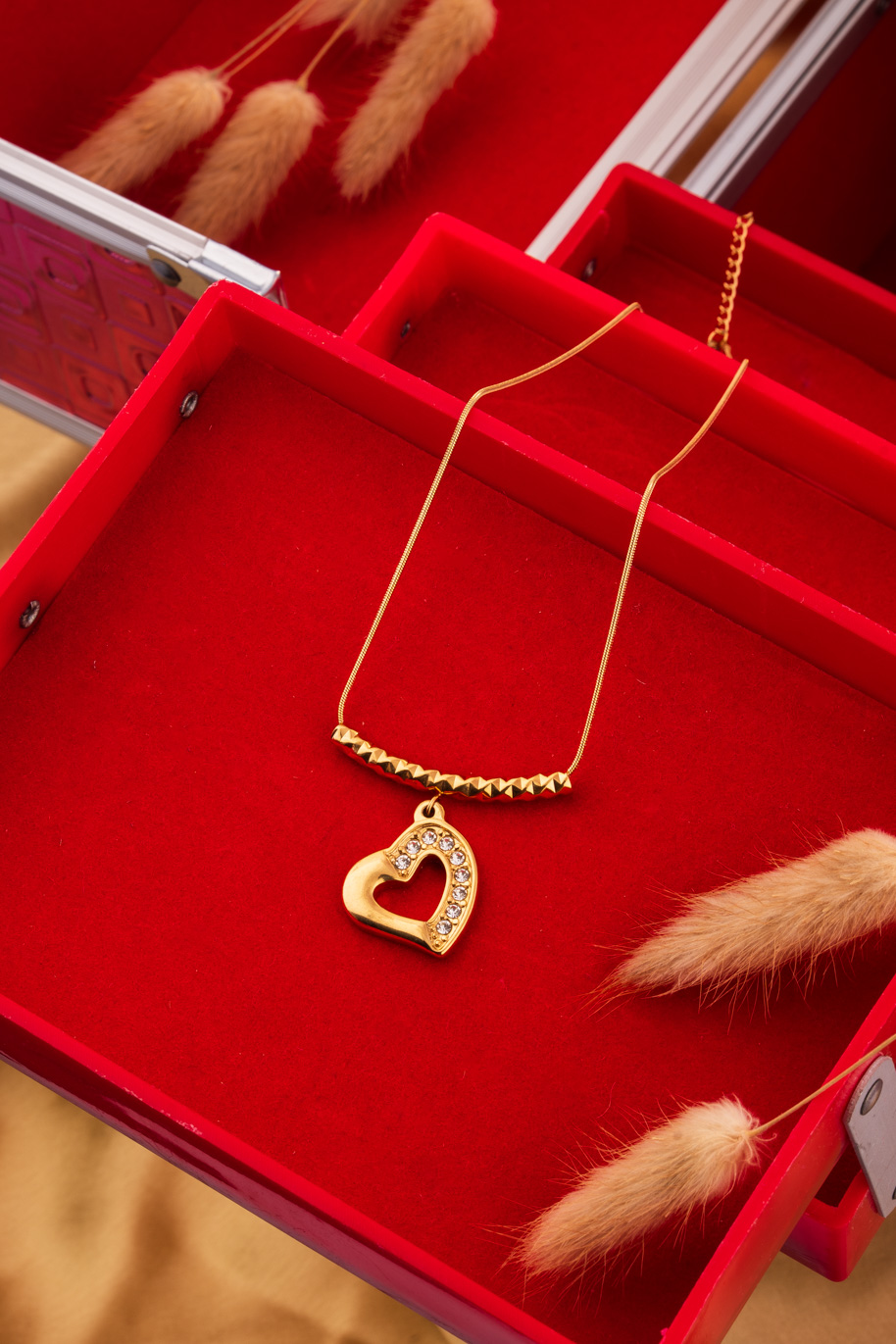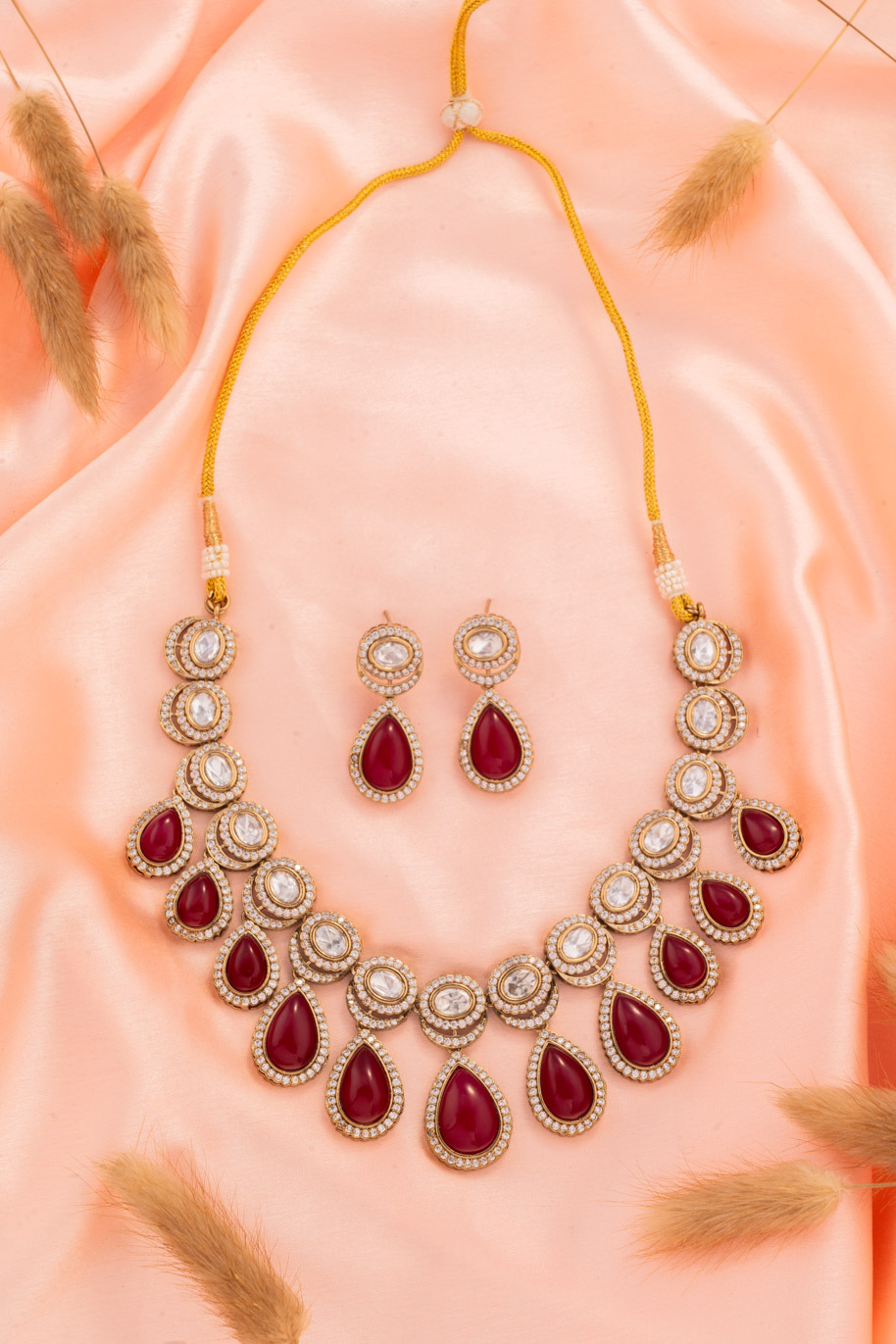 Red Crystals on AD string with White Gold Base gives an Alluring look
