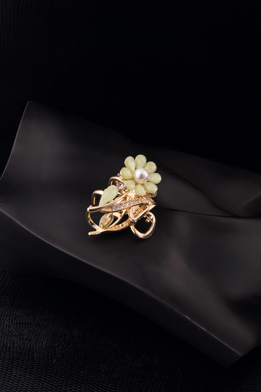 Black Moisannite Stone with Kundan and AD on Gold designed for every occasion