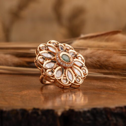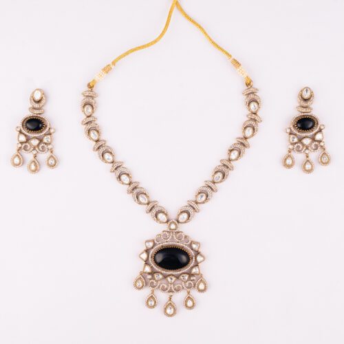 Black Moisannite Stone with Kundan and AD on Gold designed for every occasion