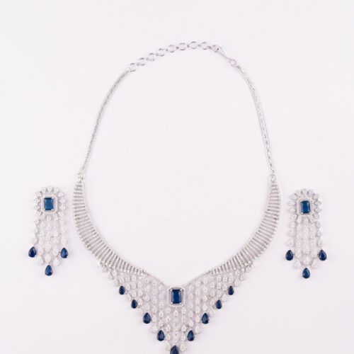 Royal Blue Crystals on AD set with White Gold Base Chokr style