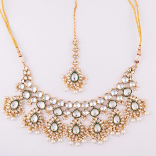 White Kundan and Crystals, Beads set with Jhumki
