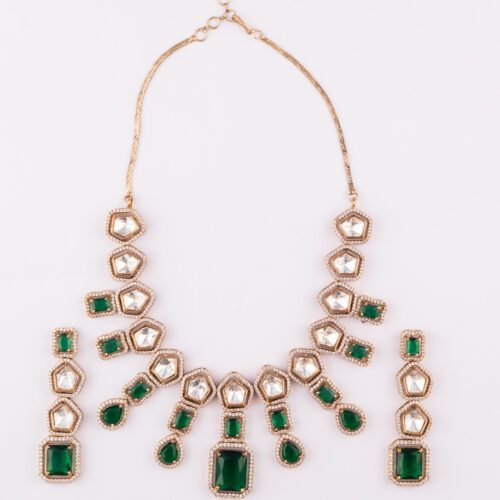 Black Moisannite Stone with Kundan and AD on Gold designed for every occasion