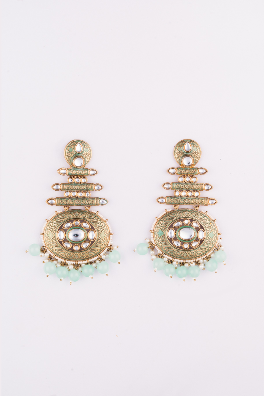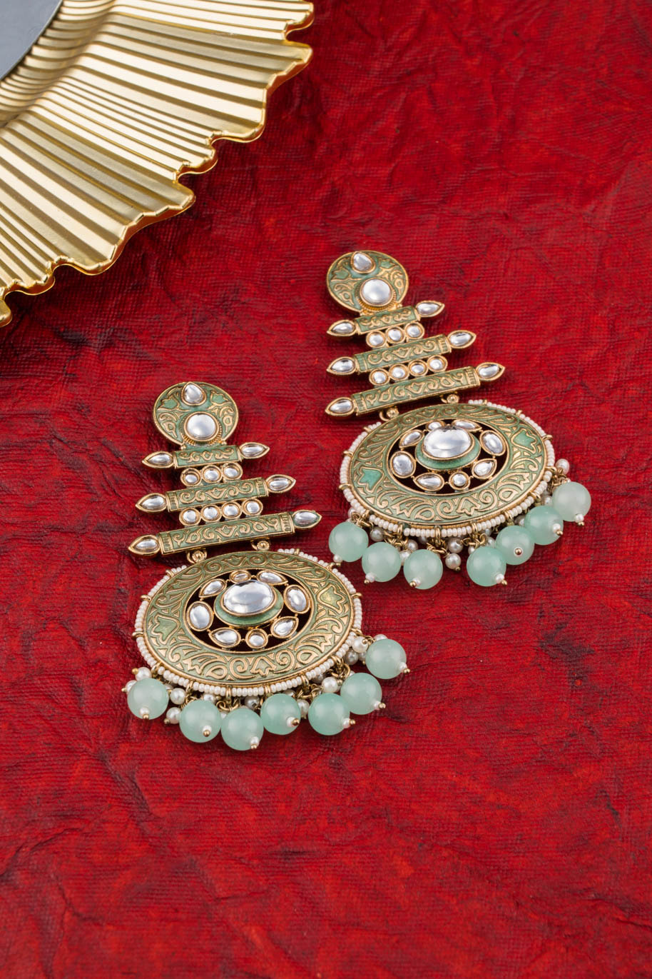 This item: Aqua Blue Beads with Kundan Antique Golden Base Earings set