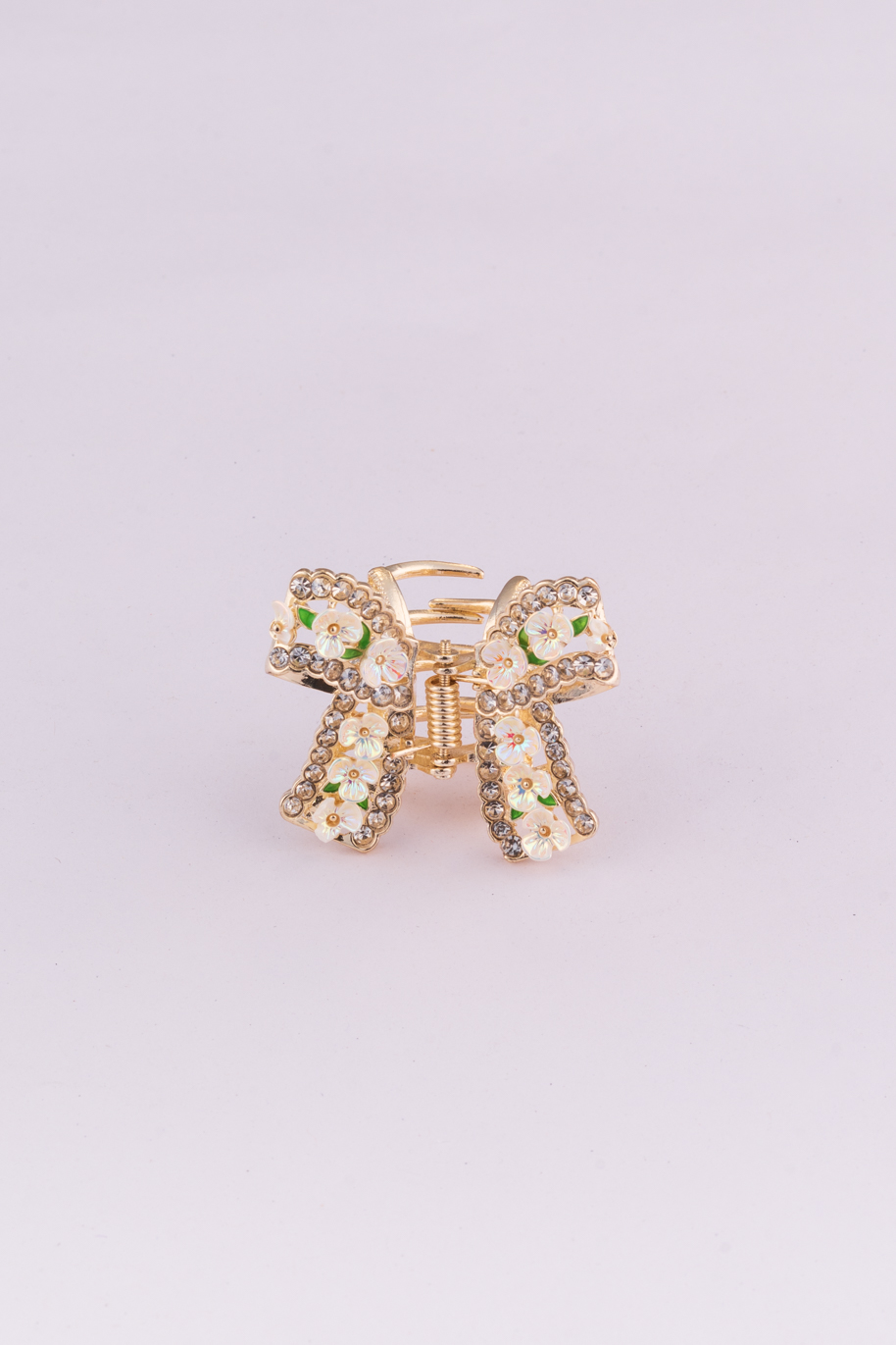 Stylish bow-shaped clutcher embellished with delicate floral accents