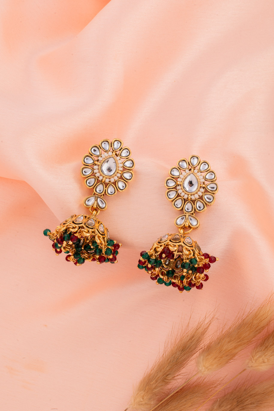 Sky Blue Beads with Kundan paired with Jhumki on Gold Base