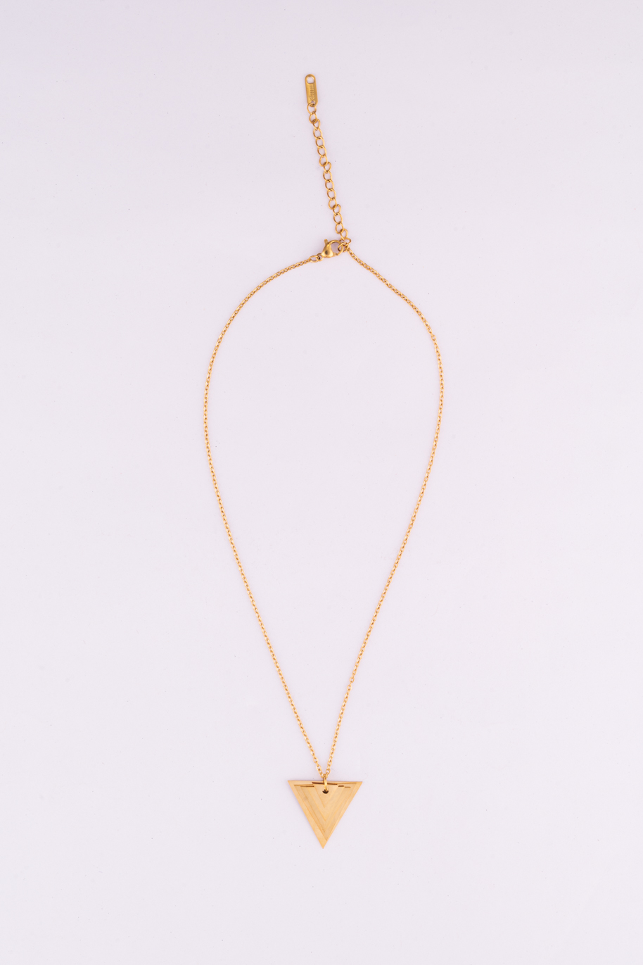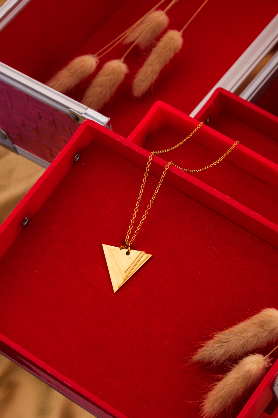 Stylish golden chain featuring a modern triangle-shaped pendant