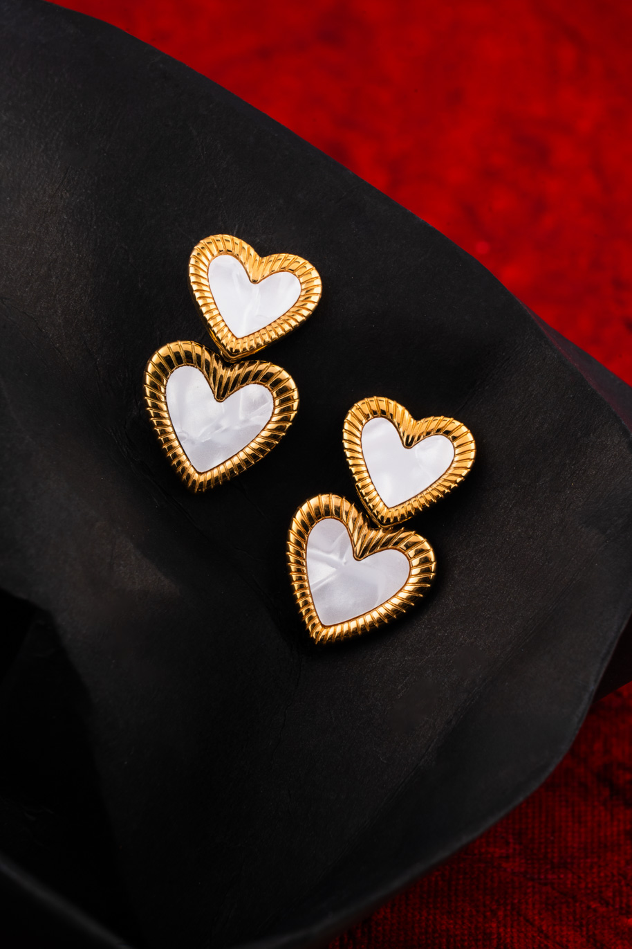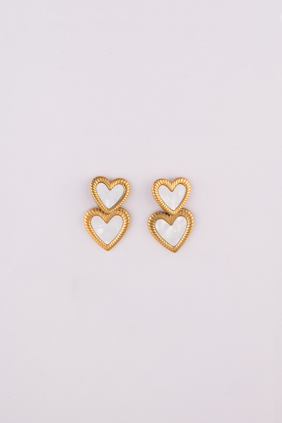 Be the first to review “Golden White Heart on Heart Earings” Cancel reply