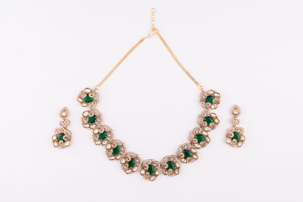 Be the first to review “Green Stones with AD all over the set on Gold Polish” Cancel reply