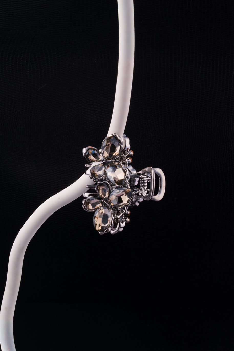 Elegant grey clutcher embellished with sparkling embedded crystals