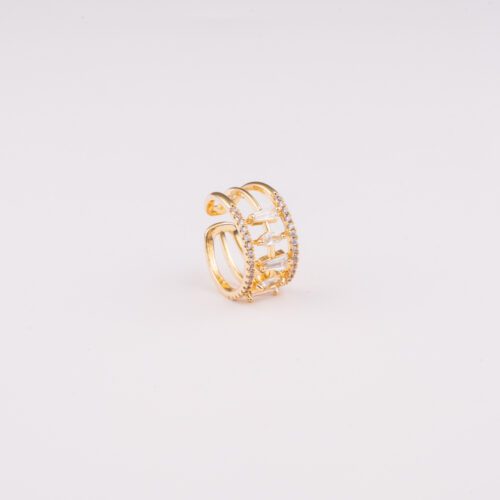 White Gold AD ring with Tiny Black Crystals Minimal and High Gently