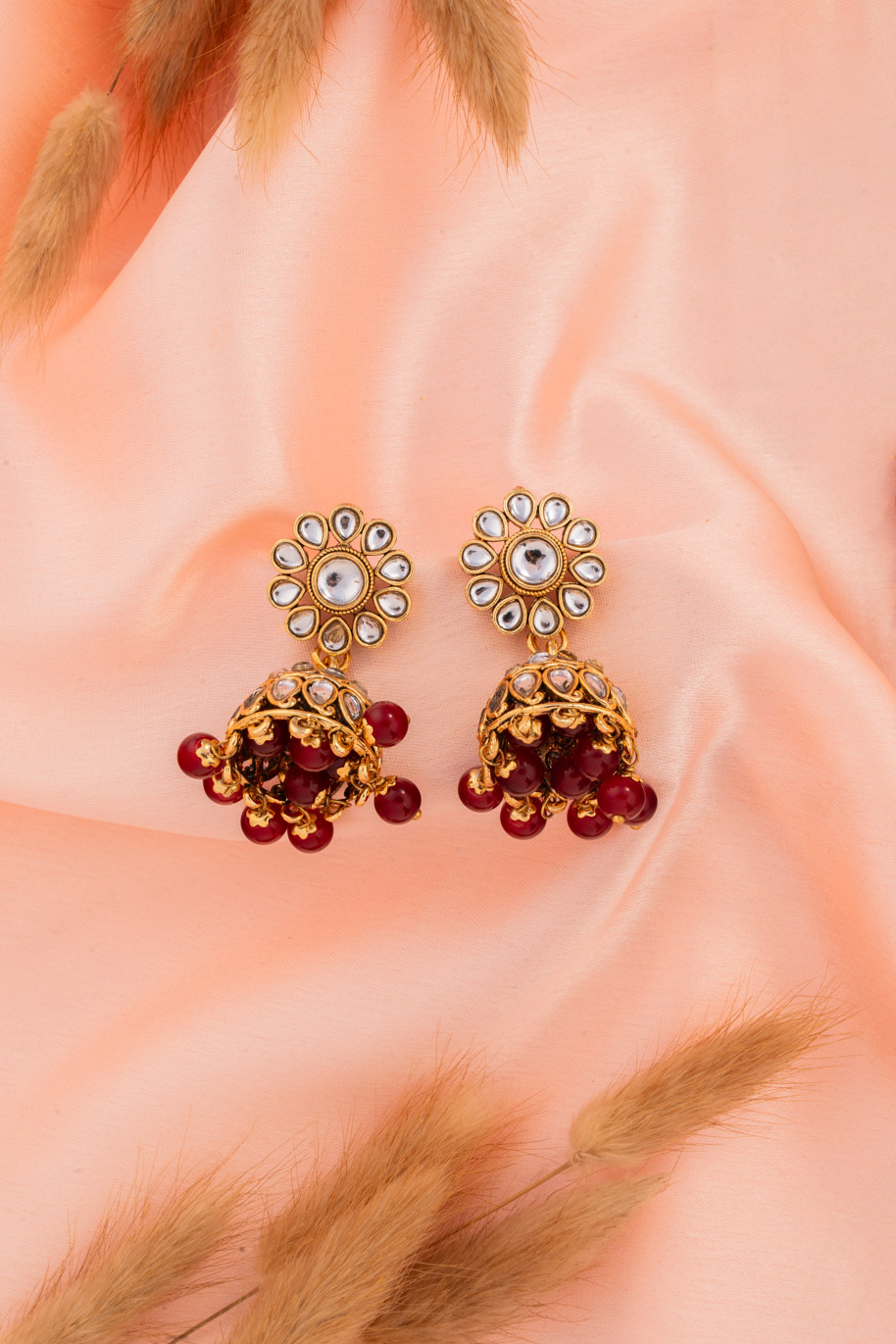 This item: Maroon Kundan and Beads with Gold polish necklace set with Tikka