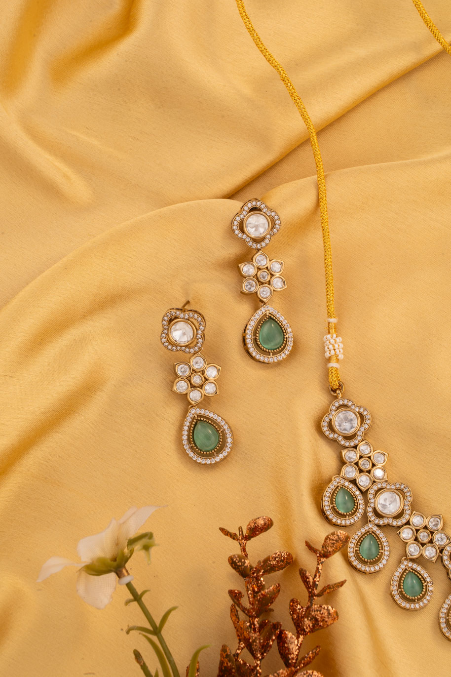 Mint Green Moisannite on Kundan with AD embellished on Gold Base
