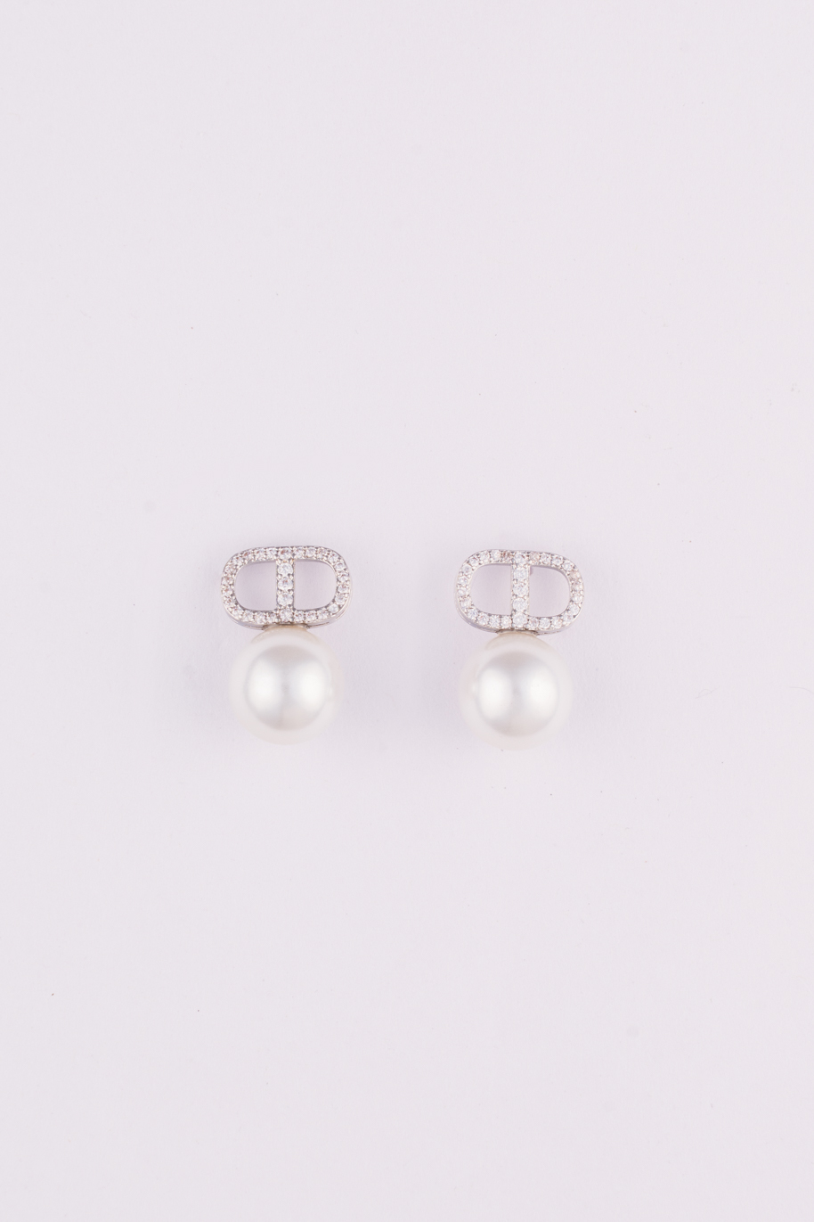 White gold AD-studded base with a small pearl drop