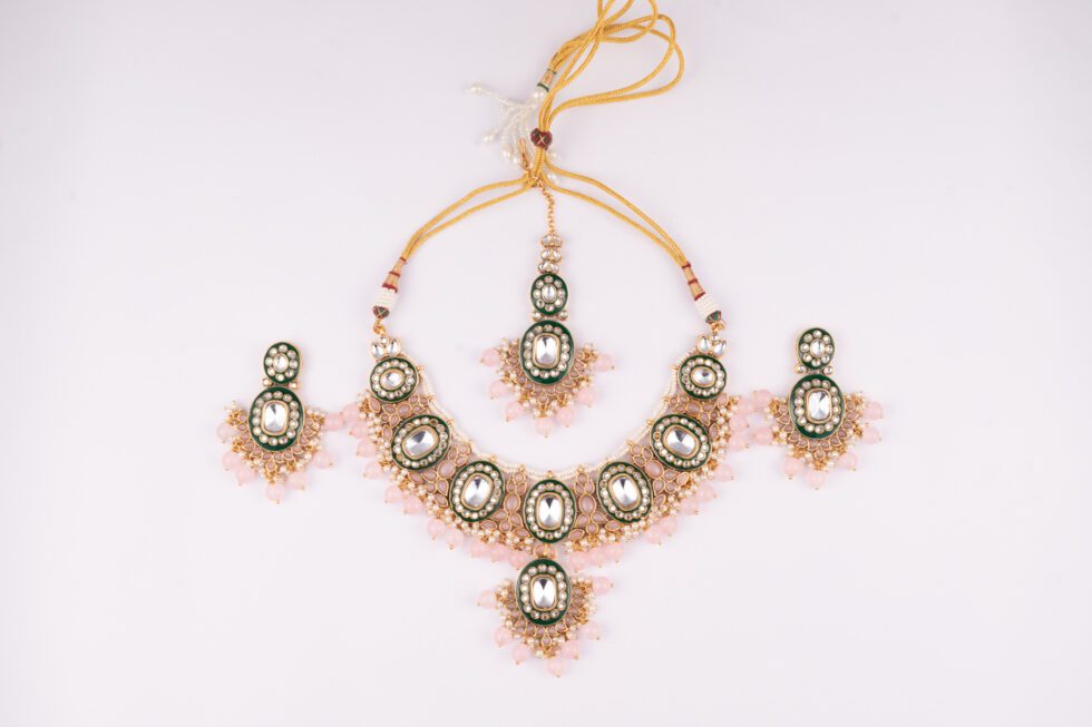 Be the first to review “Pink-White Kundan and Beads on Golden Base Necklace” Cancel reply