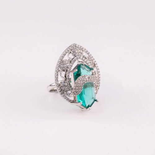 Mint Green crystals on White Gold Floral AD ring