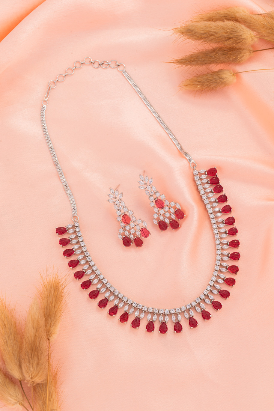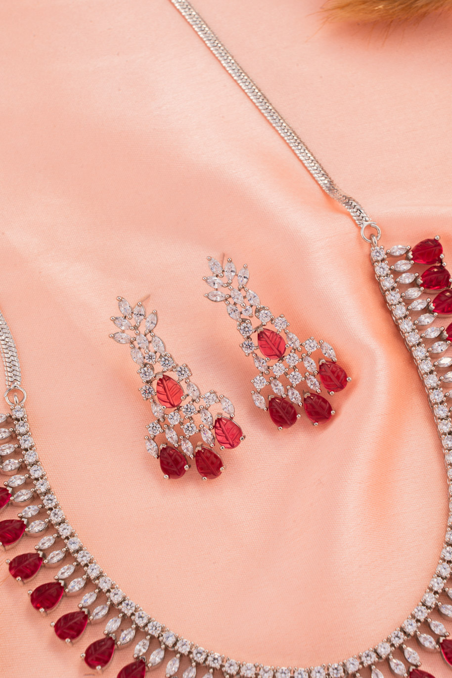 Red Crystals on AD string with White Gold Base gives an Alluring look