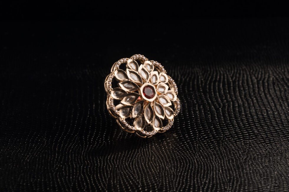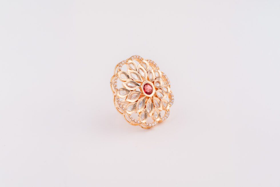 Be the first to review “Rose Red Stone on Golden Kundan Ring with AD” Cancel reply