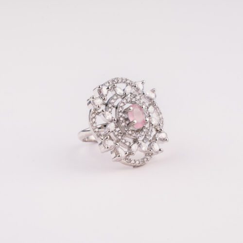 Sparkling Rose Pink AD White Gold Adjustable Ring
