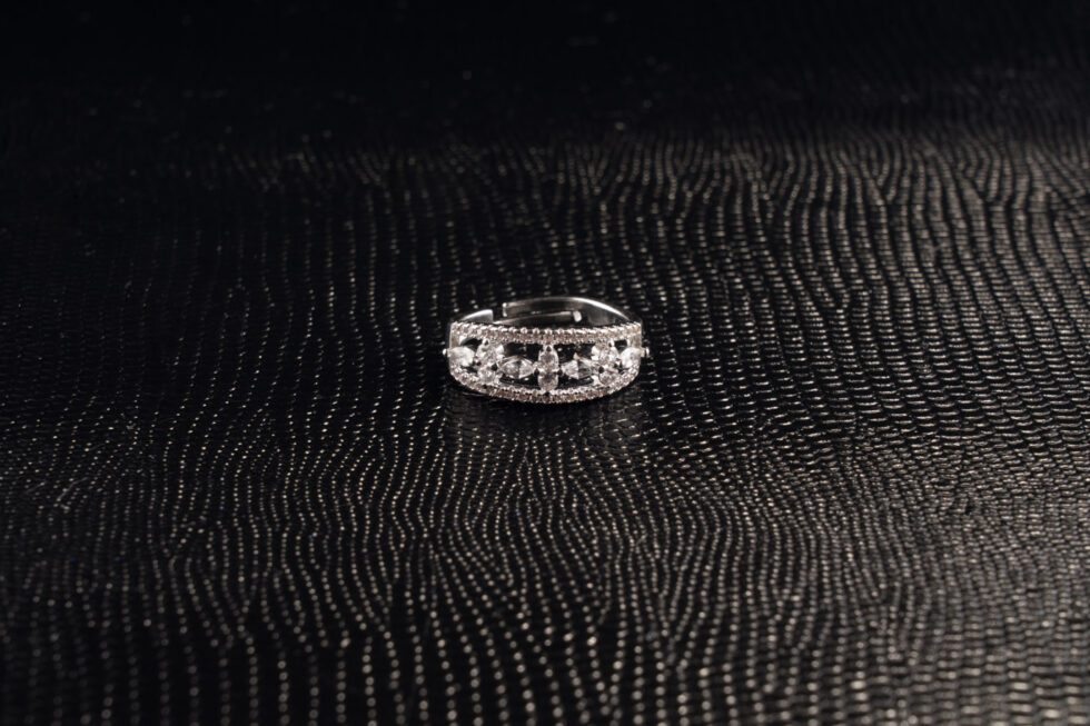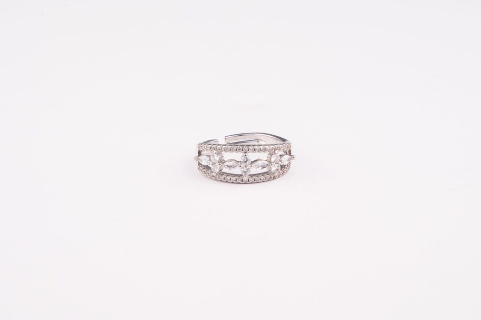 Elegant white gold adjustable ring adorned with sparkling AD stones